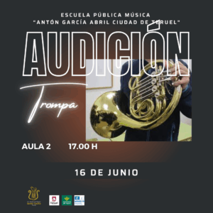 Audición final de curso del Aula de Trompa, profesora Ana Magallón, el lunes 16 de junio, en el Aula2 a las 17.00 horas