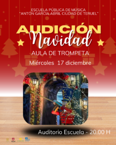 Miércoles 17, Audición del Aula de Trompeta, del profesor Antonio Civera, en el Auditorio de la Escuela Pública de Música «Antón García Abril Ciudad de Teruel» a las 20.00 horas