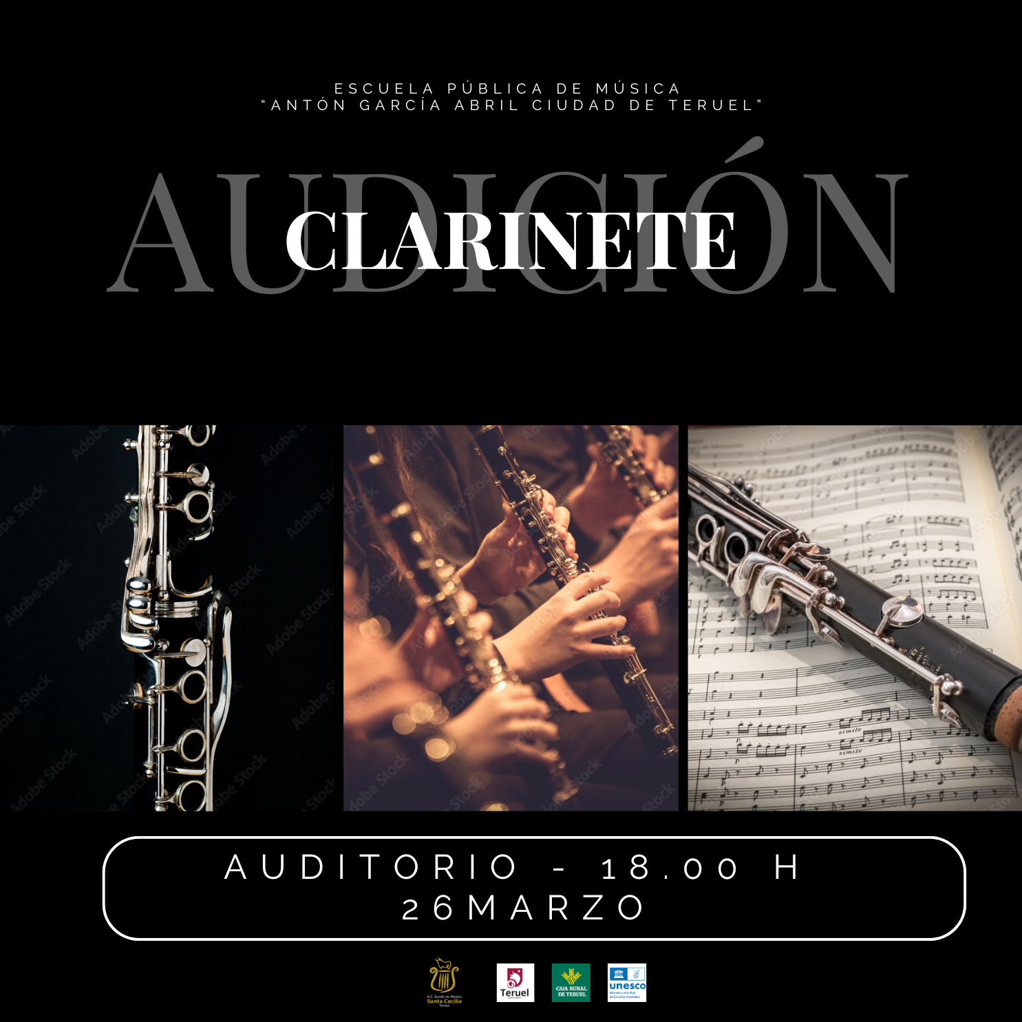 Miércoles 26 de marzo los alumnos del Aula de Clarinete del profesor J. Carlos Civera realizarán un recital en el Auditorio de la Escuela de Música a las 18.00 horas