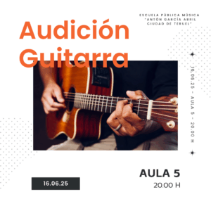 Audición final de curso del Aula de Guitarra, profesor Miguel Ángel Castel, el lunes 16 de junio, en el Aula 5 a las 20.00 horas