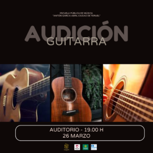 Audición de los alumnos del Aula de Guitarra, profesor Manuel Vicente, el jueves 26 de marzo a las 19.00 horas en el Auditorio de la Escuela Pública de Música «Antón García Abril Ciudad de Teruel».