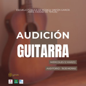 Miércoles 12 de marzo los alumnos del Aula de Guitarra del profesor Manolo Vicente realizarán un recital en el Auditorio de la Escuela de Música a las 19.30 horas