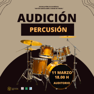 Martes 11 de marzo los alumnos del Aula de Percusión del profesor Daniel Ibáñez realizarán un recital en el Auditorio de la Escuela de Música a las 18.00 horas