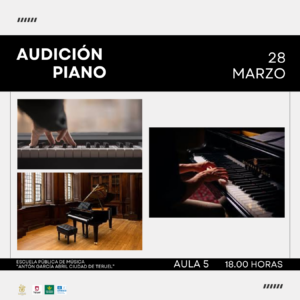 Viernes 28 de marzo los alumnos del Aula de Piano de la profesora Olga García realizarán un recital en el Aula 5 de la Escuela de Música a las 18.00 horas