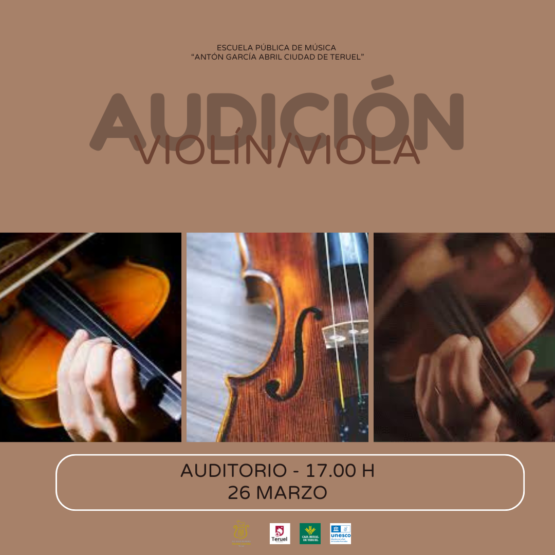 Audición de los alumnos del Aula de Violín y Viola, profesores Alberto Navas e Irene Esteban, el jueves 26 de marzo a las 17.00 horas en el Auditorio de la Escuela Pública de Música «Antón García Abril Ciudad de Teruel».