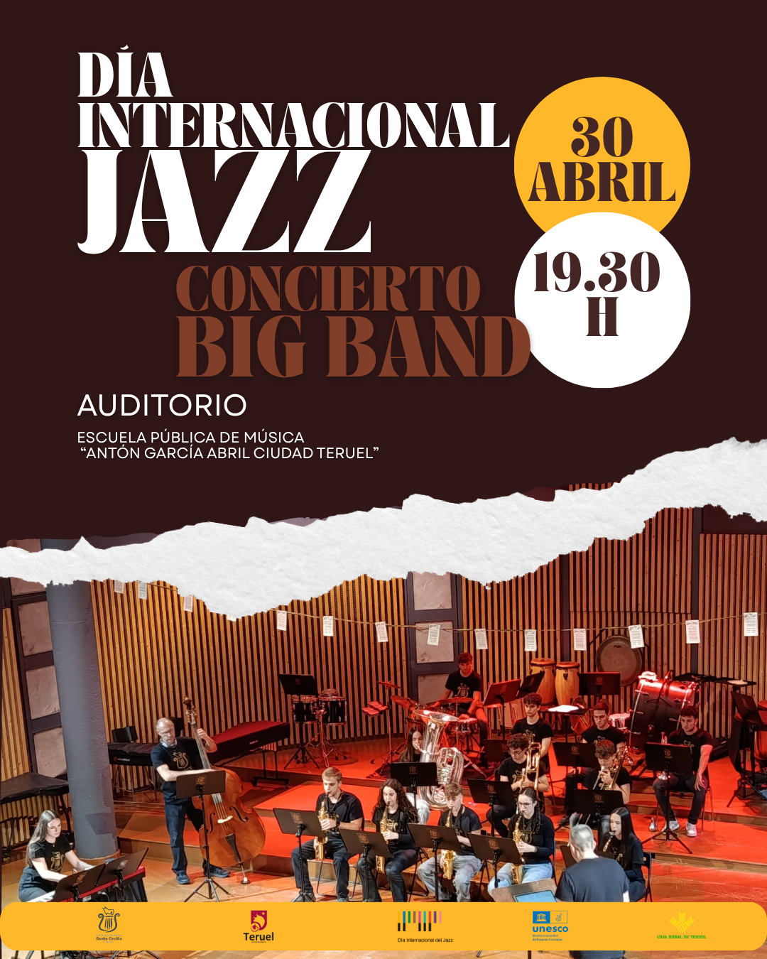 Con motivo del Día Internacional del Jazz, la Big Band ofrece un concierto que rinde homenaje a uno de los géneros más influyentes y universales de la historia de la música. A través de un repertorio vibrante y lleno de matices, el público recorrerá algunos de los estilos y épocas más representativos del jazz, desde el swing más clásico hasta sonoridades más contemporáneas.