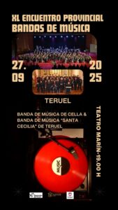 Teruel será una de las sedes de los Encuentros provinciales de bandas de música que organiza la Diputación Provincial de Teruel. Participarán la Banda de Cella y la Banda de Música «Santa Cecilia» de Teruel. Lugar: Teatro Marín a las 19.00 horas