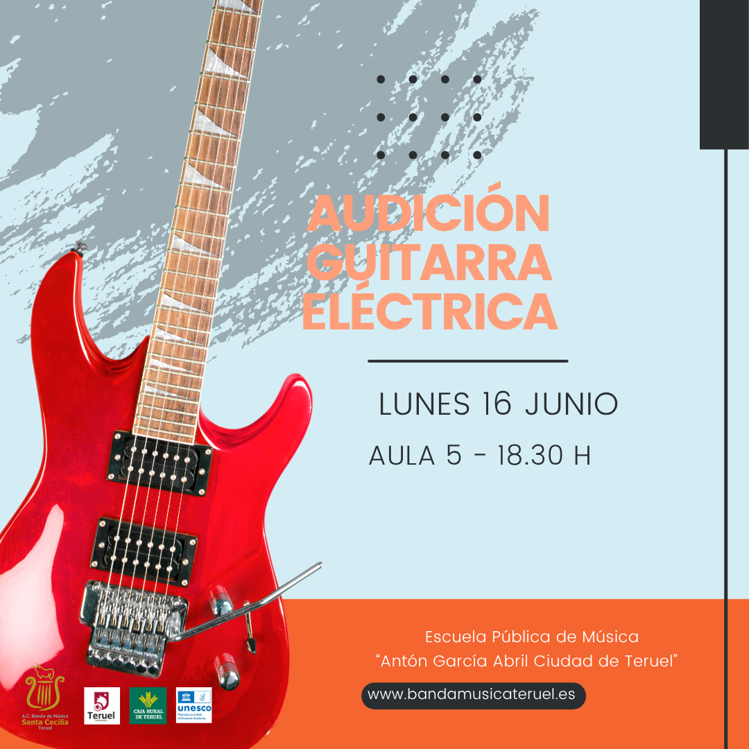 Audición final de curso del Aula de Guitarra Eléctrica, profesor Emi Evrard el lunes 16 de junio, en el Aula 5 a las 18.30 horas