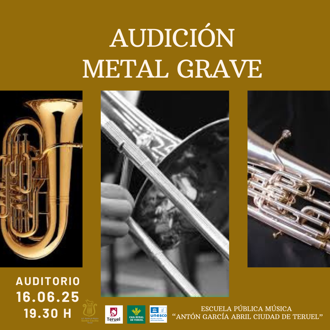 Audición final de curso del Aula de Trombón, Bombardino y Tuba, profesor José Luis Ocón, el lunes 16 de junio, en el Auditorio a las 19.30 horas