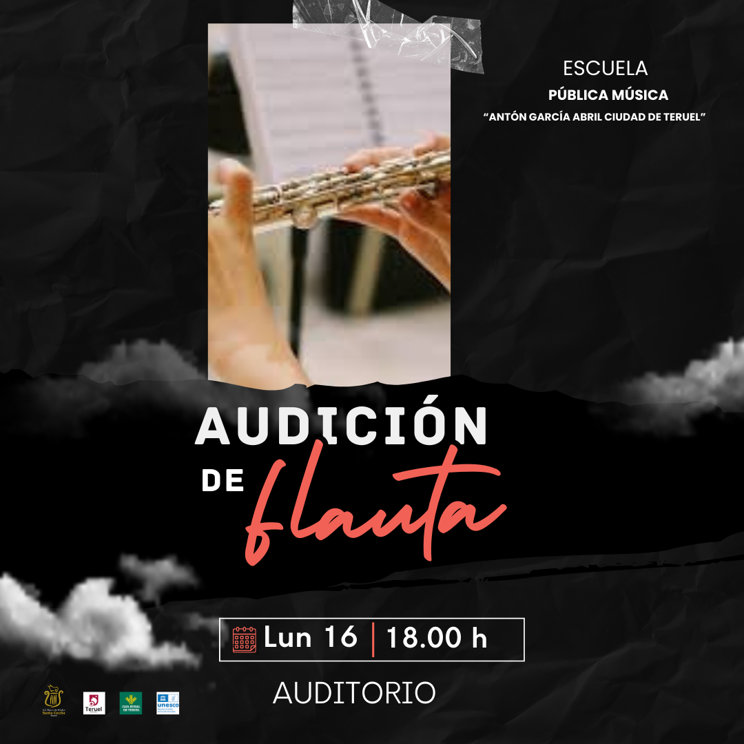 Audición final de curso del Aula de Flauta, profesora Elisabet Segura, el lunes 16 de junio, en el Auditorio a las 18.00 horas