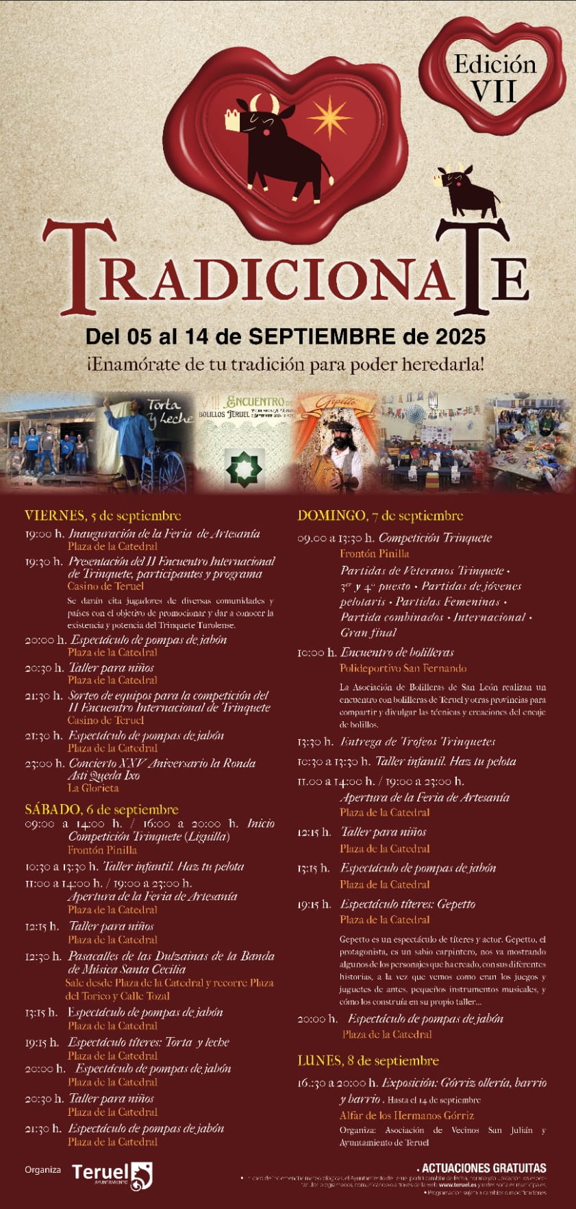Dentro de las actividades programadas por el Ayuntamiento de Teruel en "TradicionaTe", el Grupo de Música Tradicional "Santa Cecilia" de Teruel, dirigido por José Manuel Alba Velázquez, realizará un pasacalles por las calles del Centro Histórico. La cita, el sábado, 6 de septiembre, a las 12.30 horas.