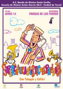 Para celebrar el Día Europeo de la Música la Asociación Cultural Banda de Música “Santa Cecilia” de Teruel y la Escuela Pública de Música “Antón García Abril Ciudad de Teruel” pondrán en escena el espectáculo “SUPERCALIFRAGILISTICOESPIALIDOSO”, un recorrido por los grandes temas del “mundo Disney”. Formarán parte de este festival fin de curso la Banda de Música “Santa Cecilia” de Teruel y la Banda de la Escuela de Música, dirigidas por Daniel Ibáñez Barreda, los alumnos de Música y Movimiento 3 y 4, de las profesoras Carolina Paterson Marco y Ana Antón Salvador, y los alumnos de Formación Musical Iniciación, Formación Musical 1 y 2, de los profesores Ivana Popovic, Olga García Gimeno, Elisabet Segura Pellicer , Sebastián Guitarte Pérez y Antonio Civera Plumed. Alrededor de 430 personas participando y poniendo en valor lo mejor de las bandas sonoras de las películas de Disney. “Tobogán y Colibrí” serán los maestros de ceremonia del acto.